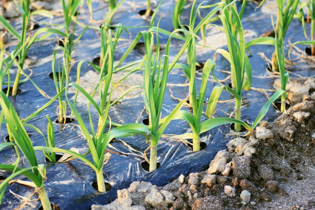 9月から11月にかけて植えつけしたニンニクは越冬をして休眠状態に入り、糖度をたっぷりとためこみます。ハチミツやどんぐりをいっぱい食べて冬眠するクマみたいな生態で、なんだかにんにくがちょっぴりかわいく思えてきますね。